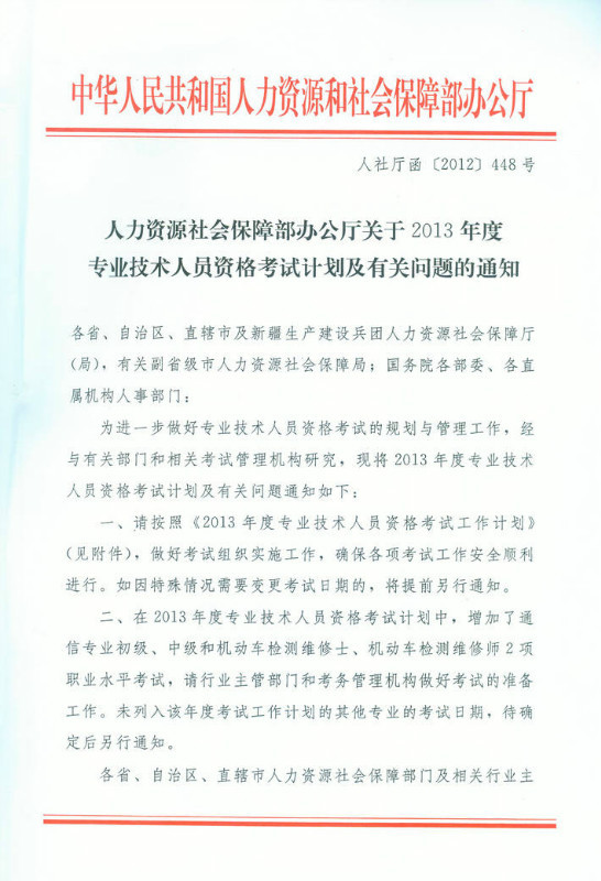 2013年度物业管理师执业资格考试时间确定为:2013年9月7、8日
