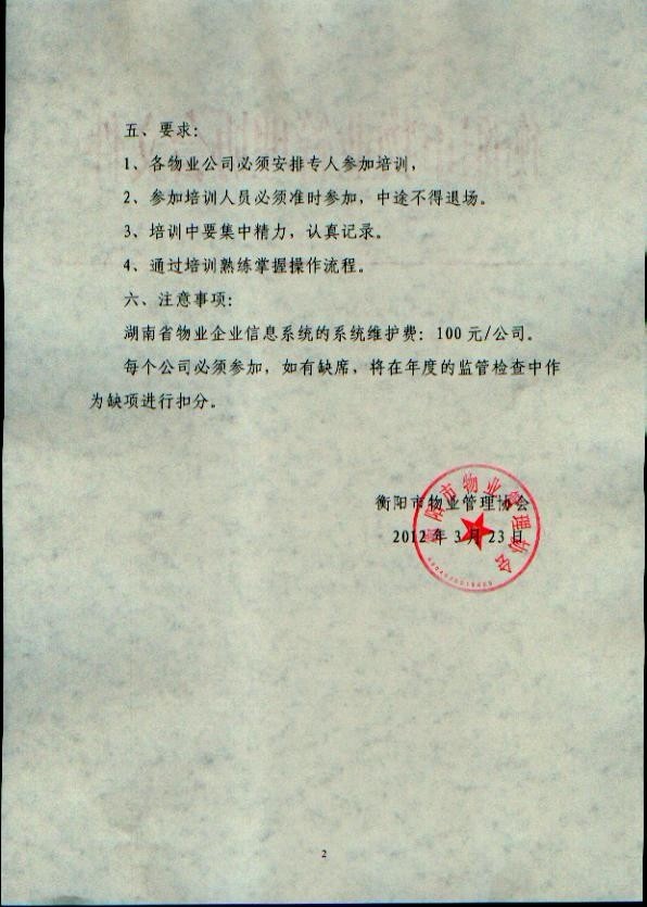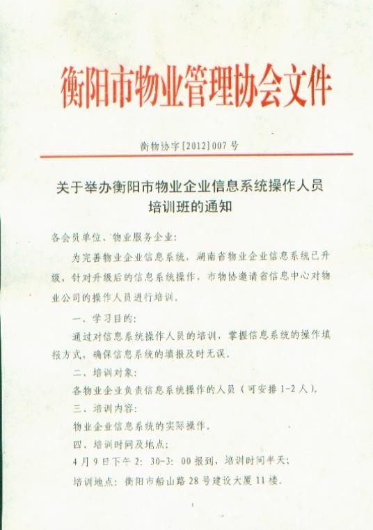 关于举办衡阳市物业企业信息系统操作人员培训班的通知.