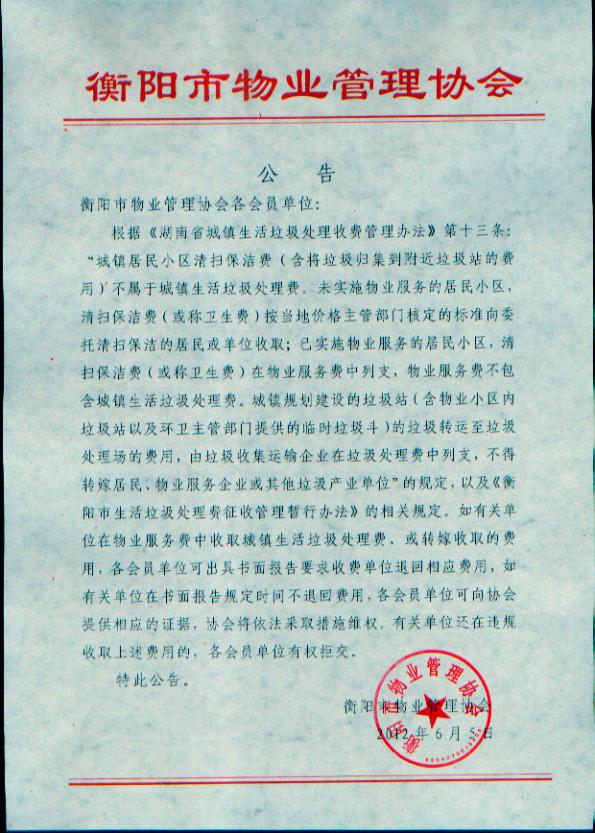 关于公布衡阳市2019年度物业服务企业信用评价结果的通知