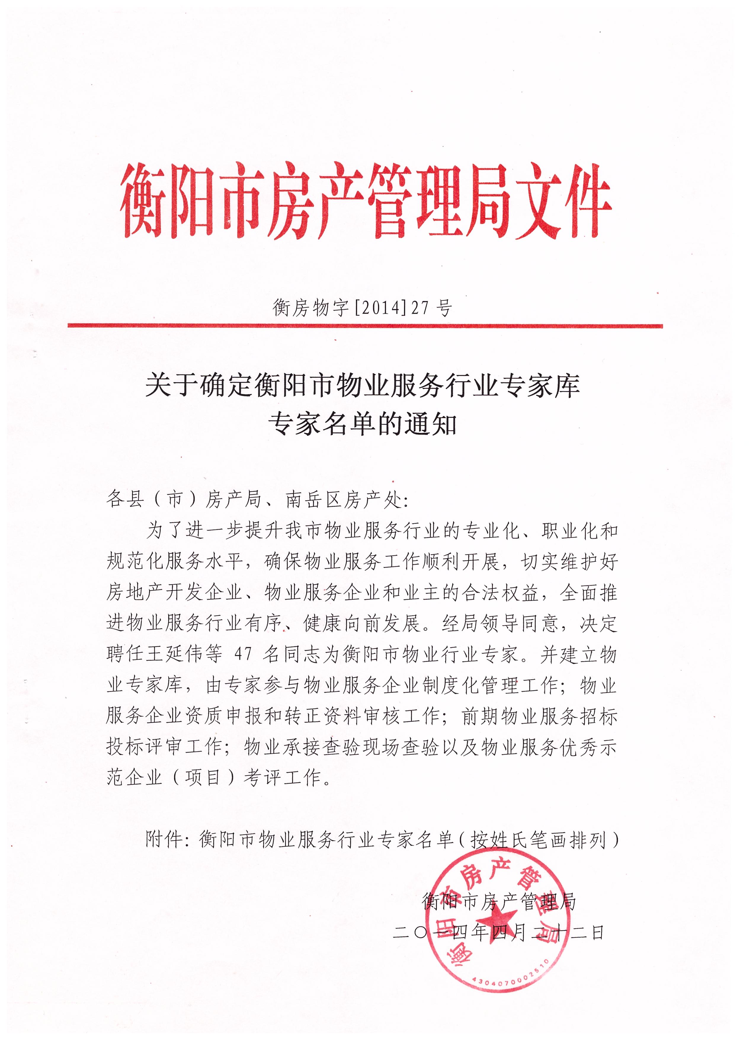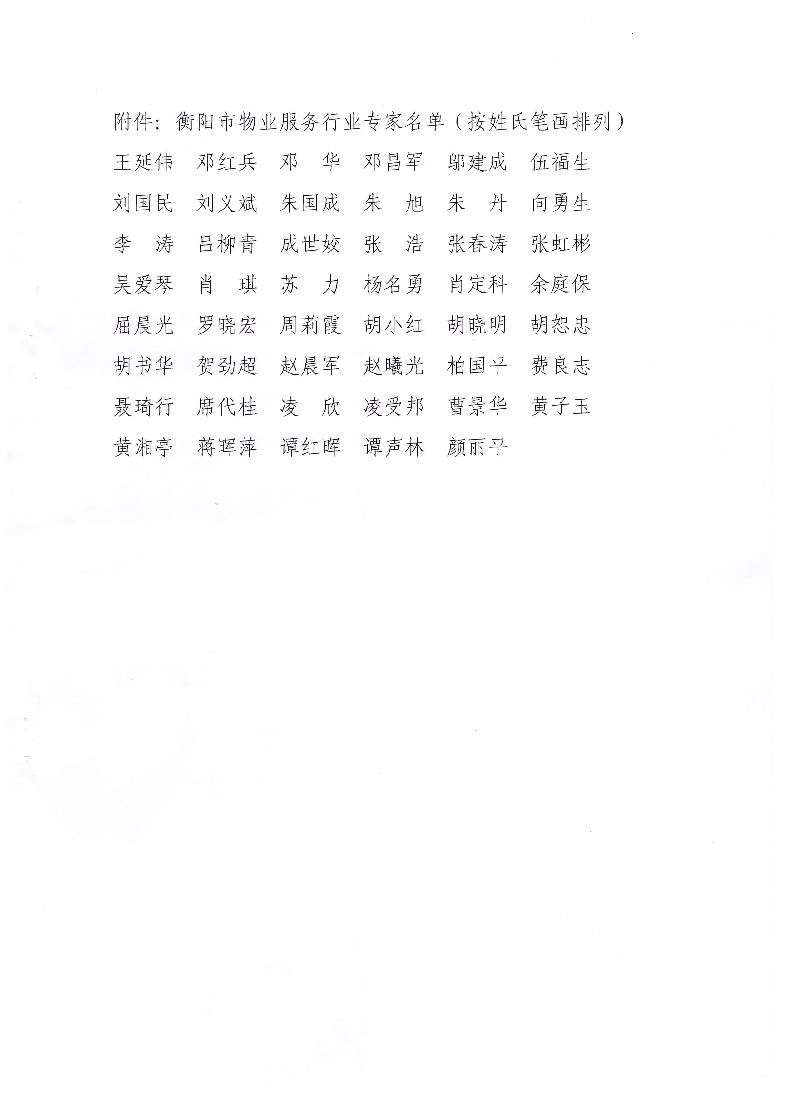 关于确定衡阳市物业服务行业专家库专家名单的通知