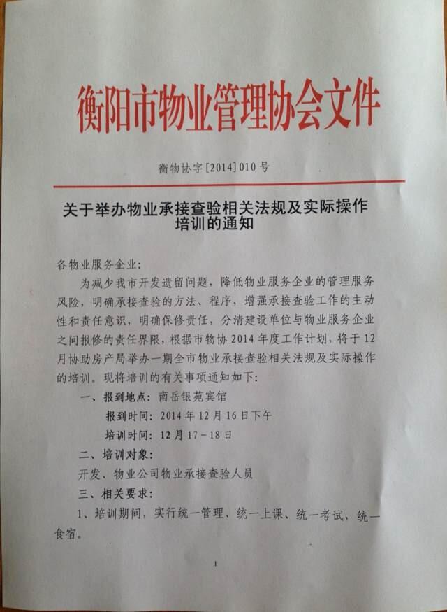 关于举办物业承接查验相关法规及实际操作培训的通知