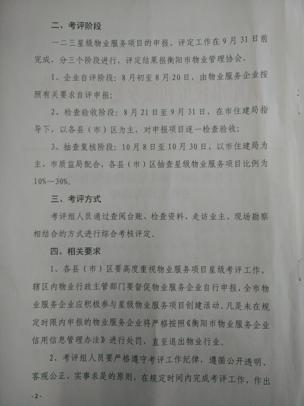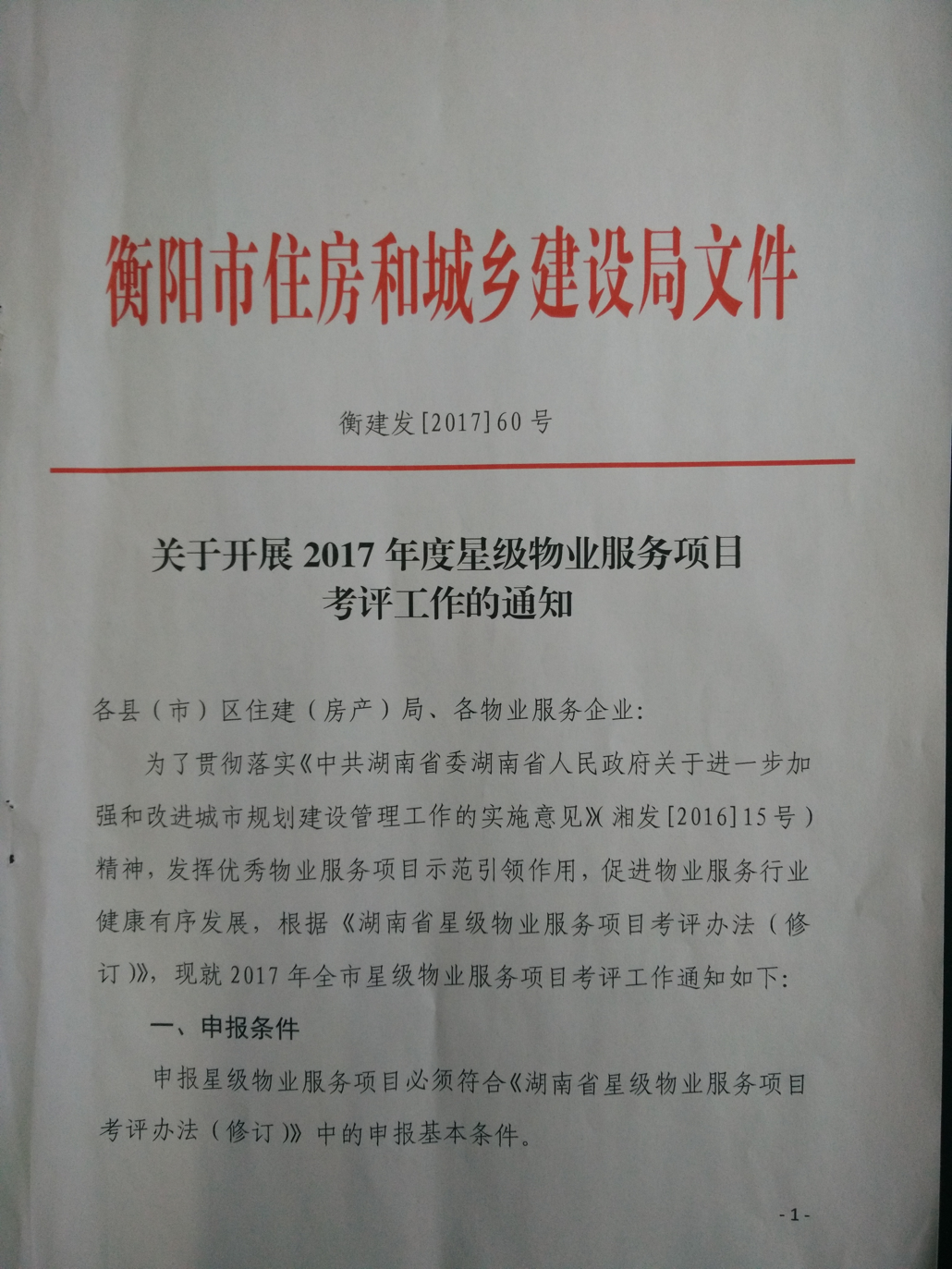 关于开展2017年度星级物业服务项目考评工作的通知