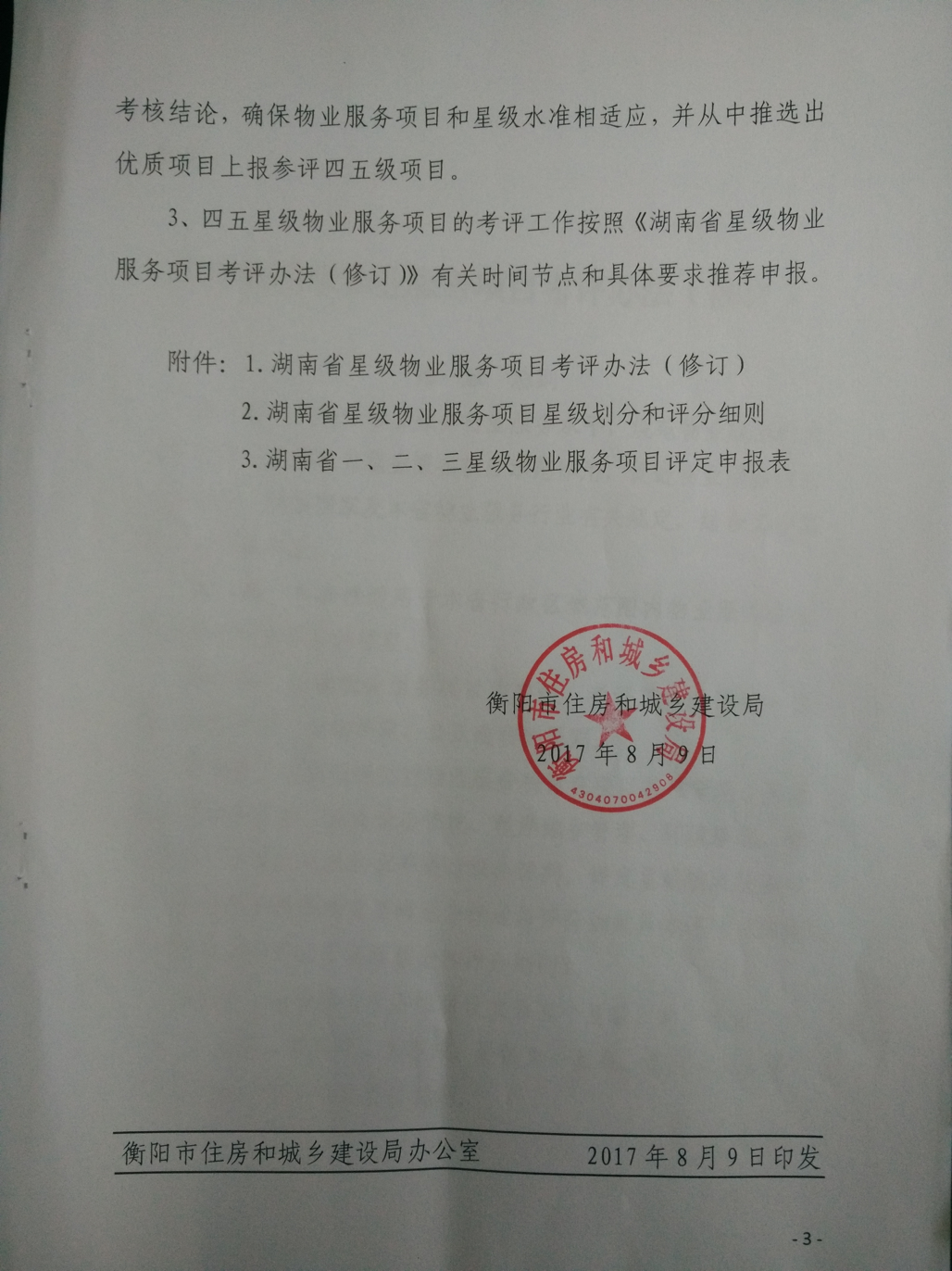 关于对《湖南省星级物业服务项目考评办法(修订)》的补充通知