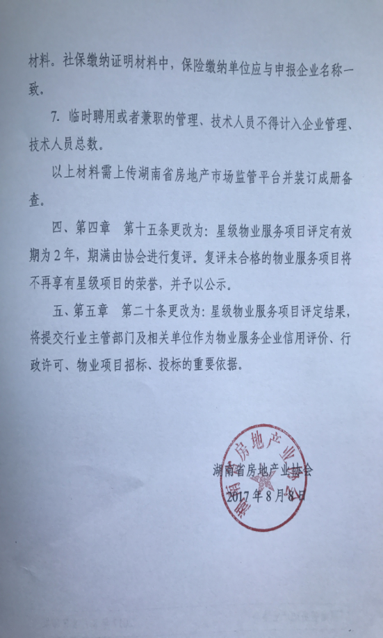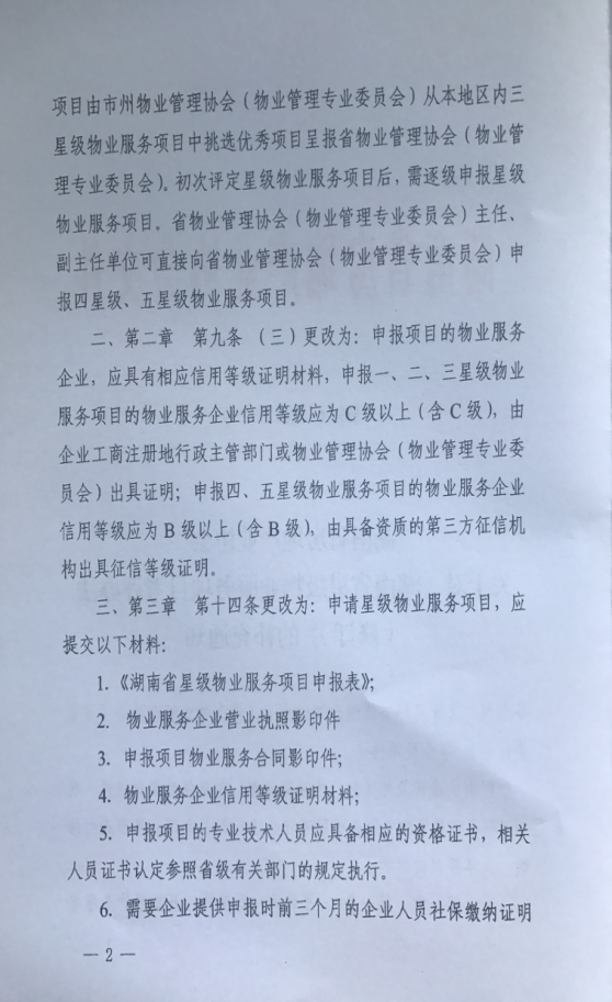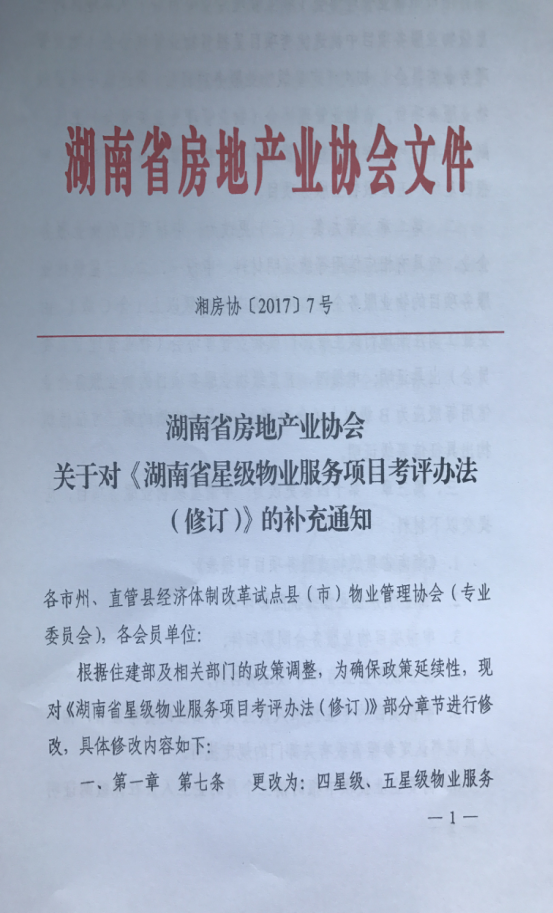 关于对《湖南省星级物业服务项目考评办法(修订)》的补充通知