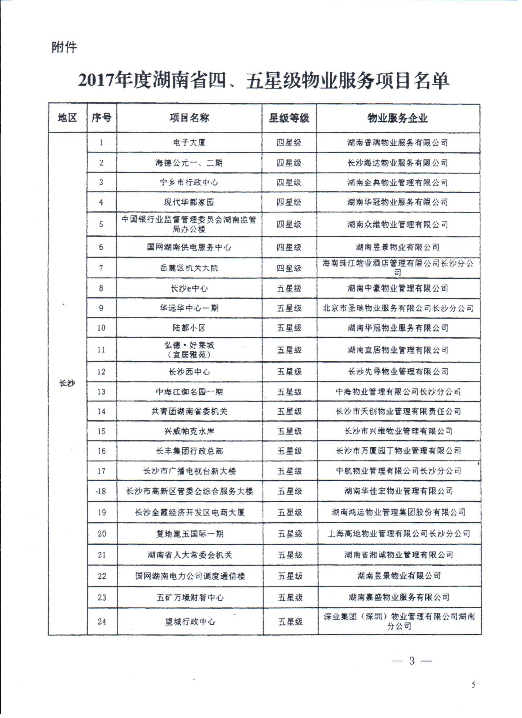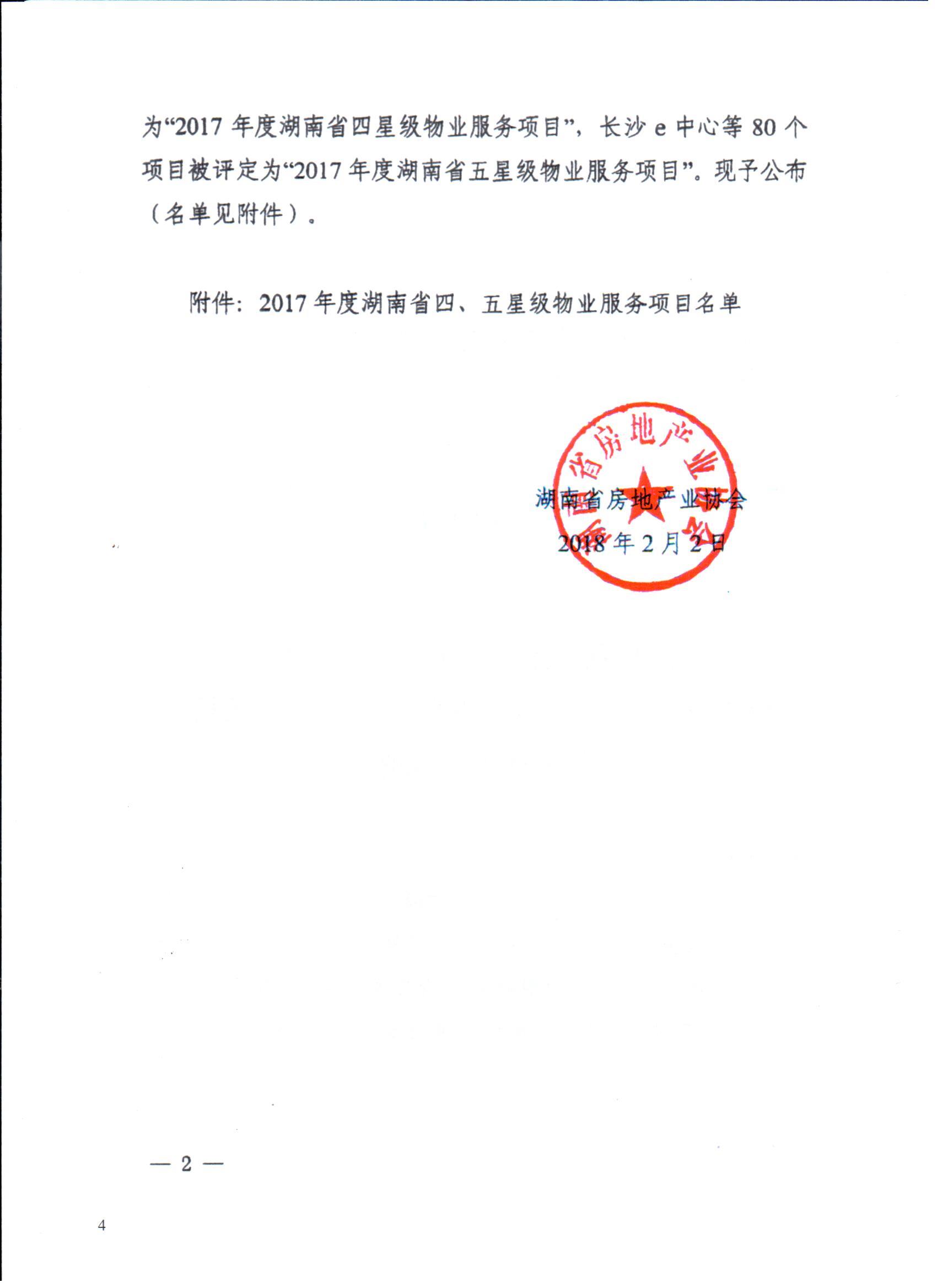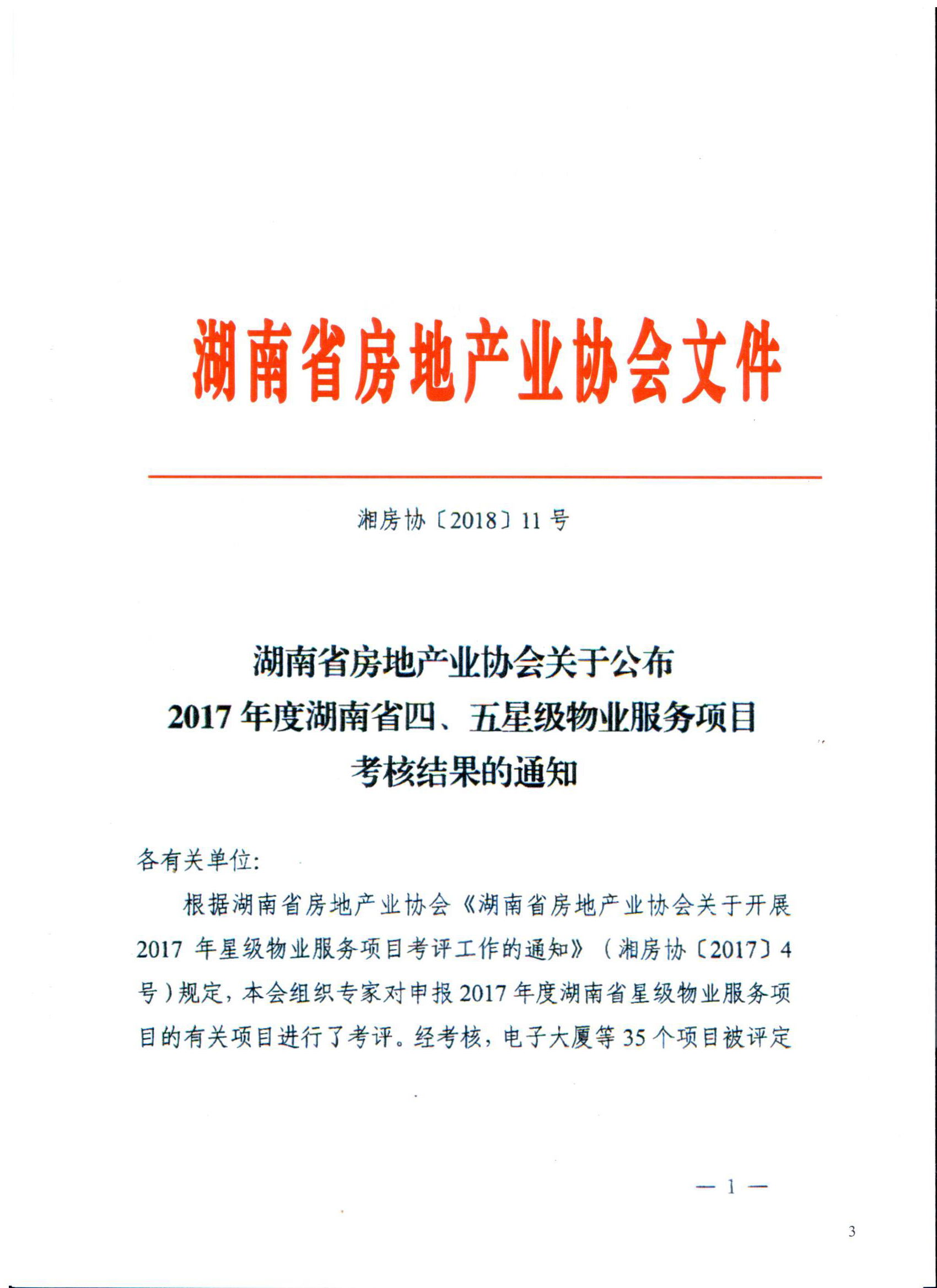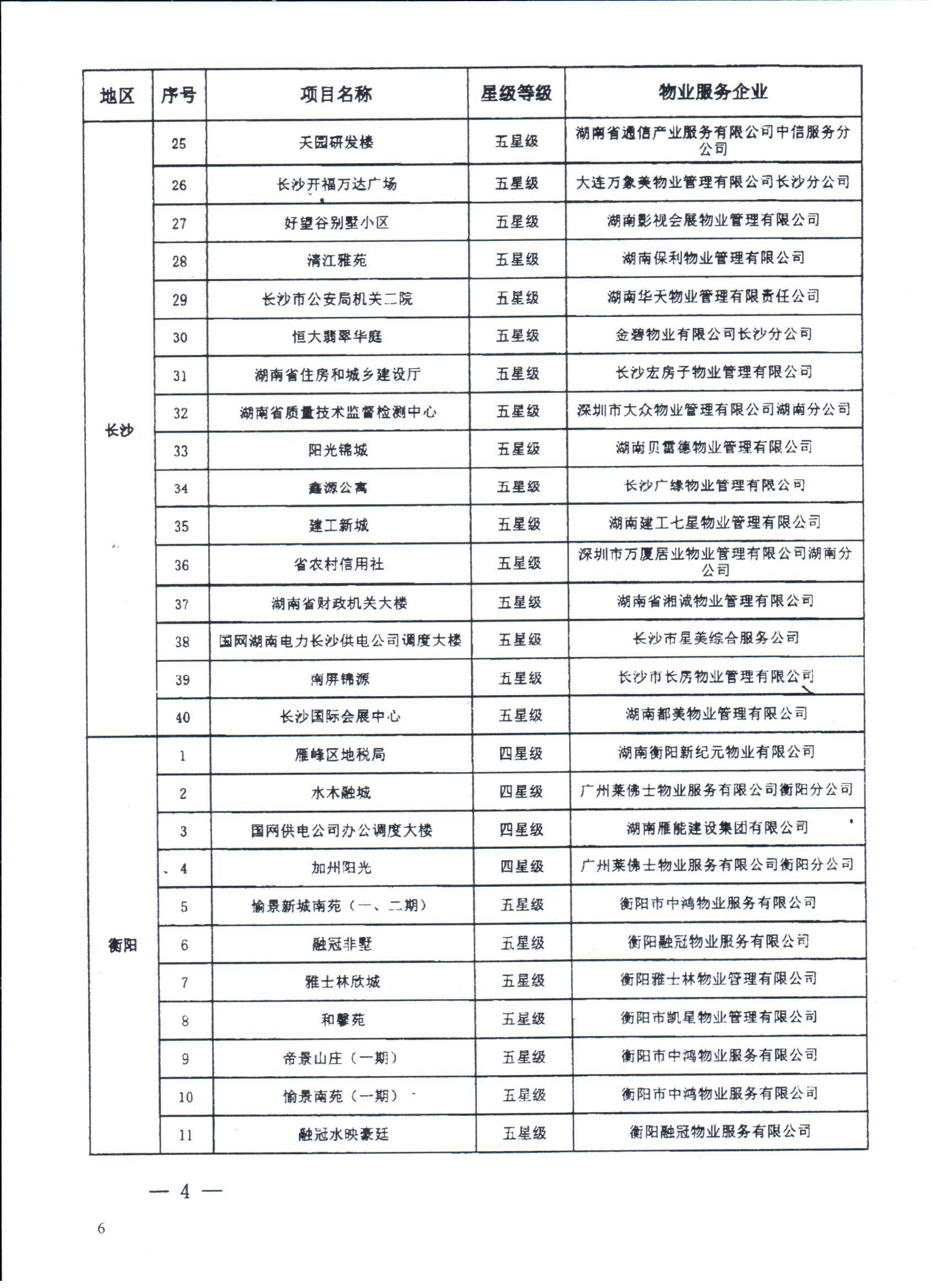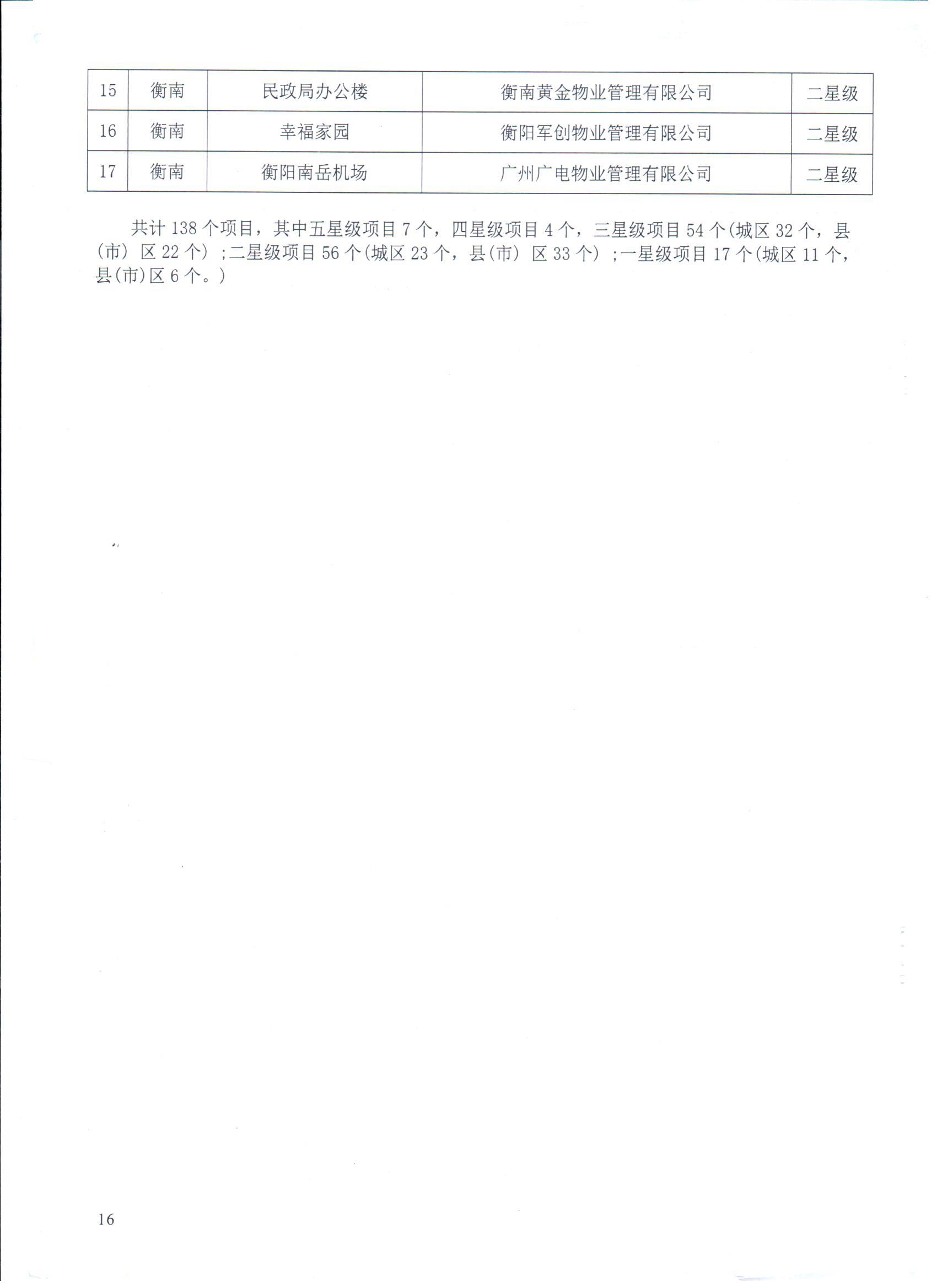 关于表彰2017年度衡阳市星级物业服务项目的决定