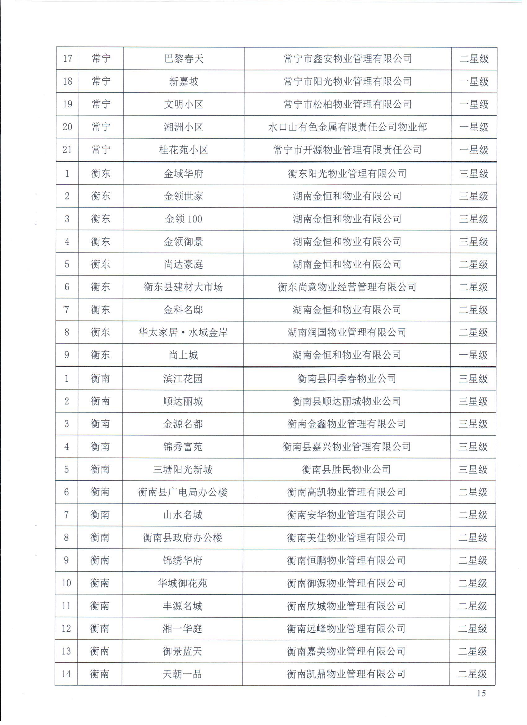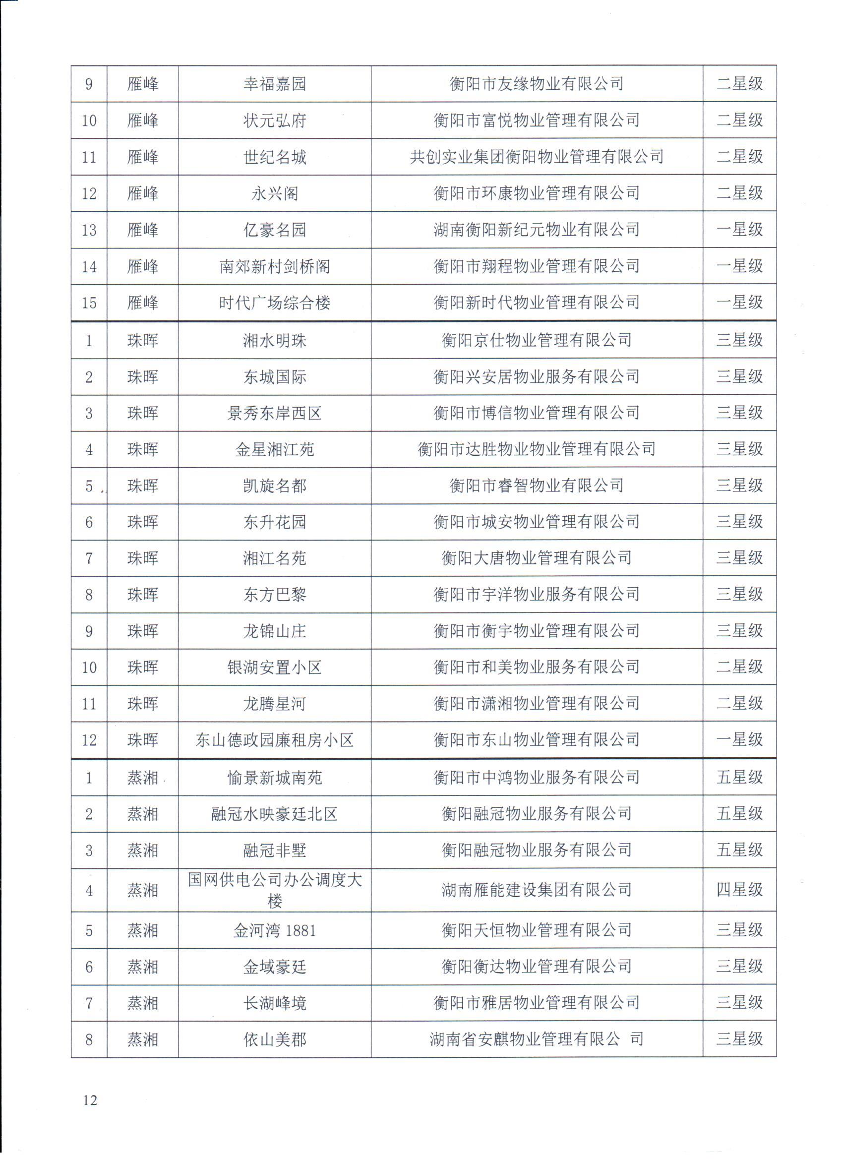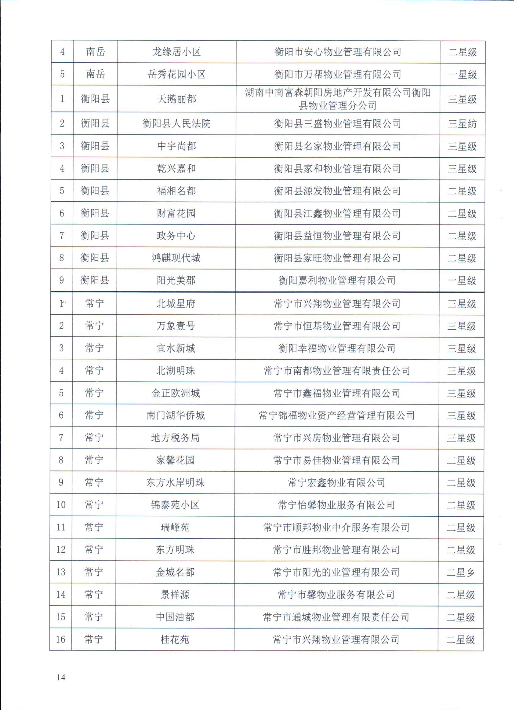 关于公布衡阳市2020年度物业服务企业信用评价结果的通知