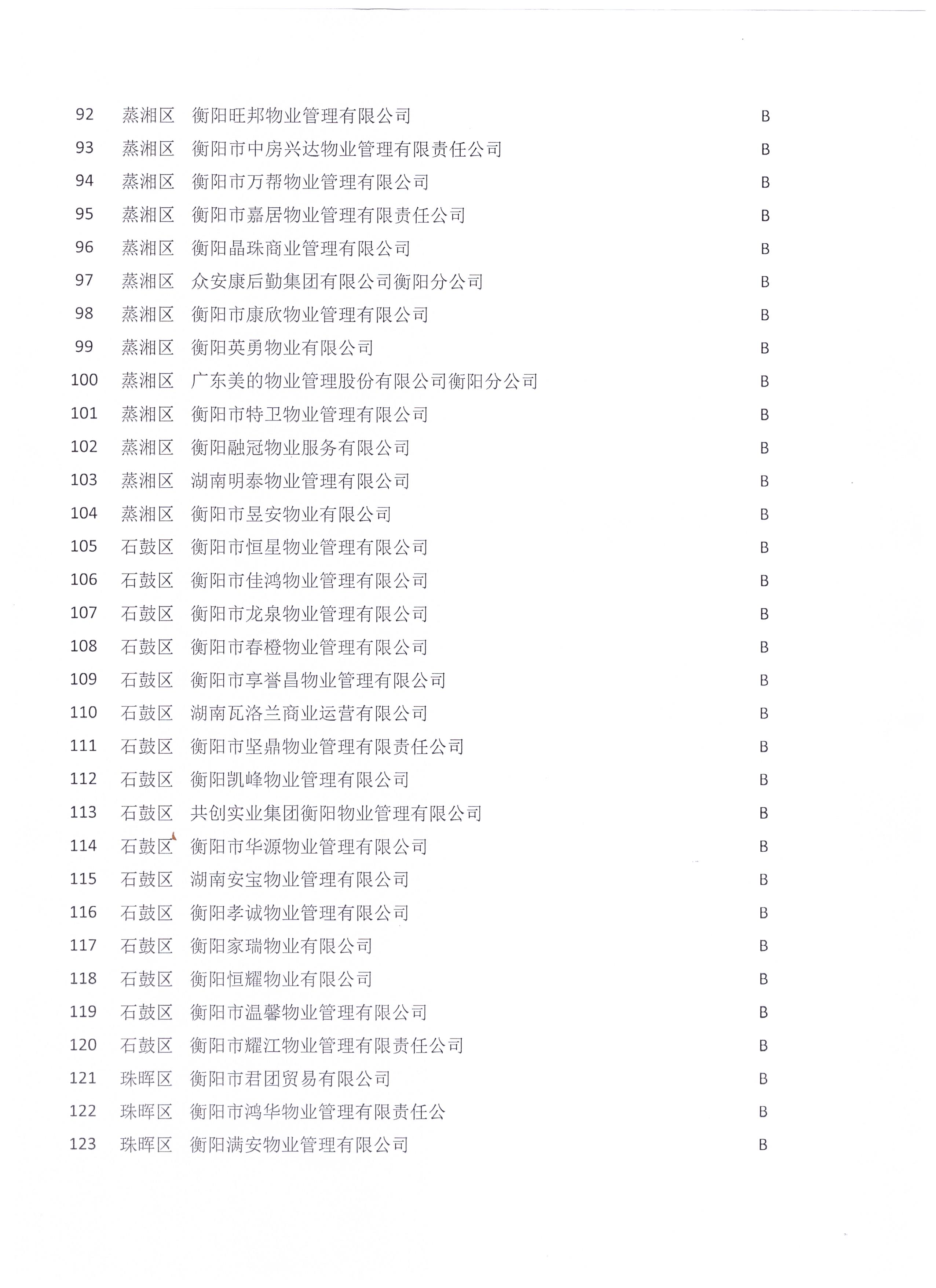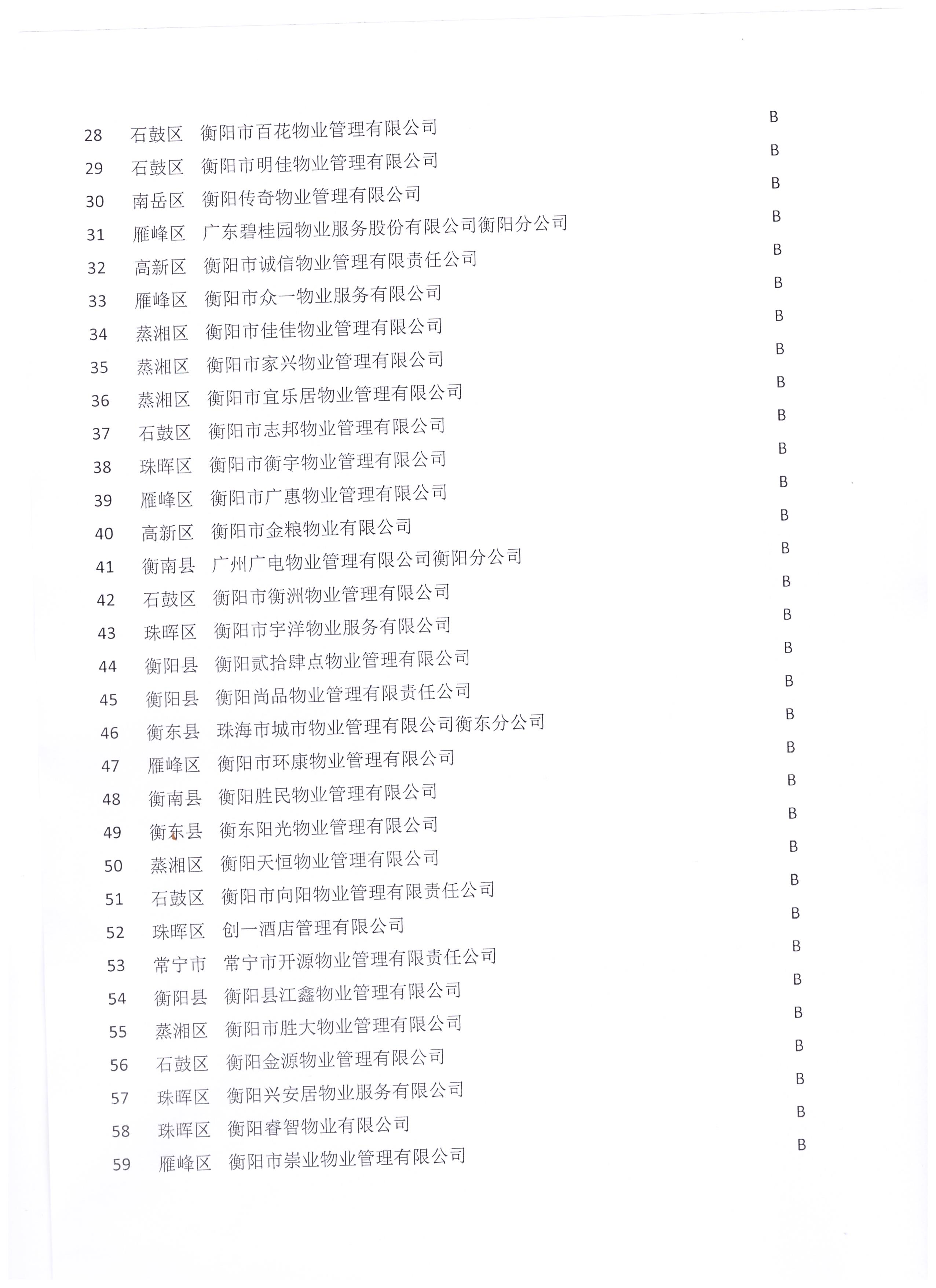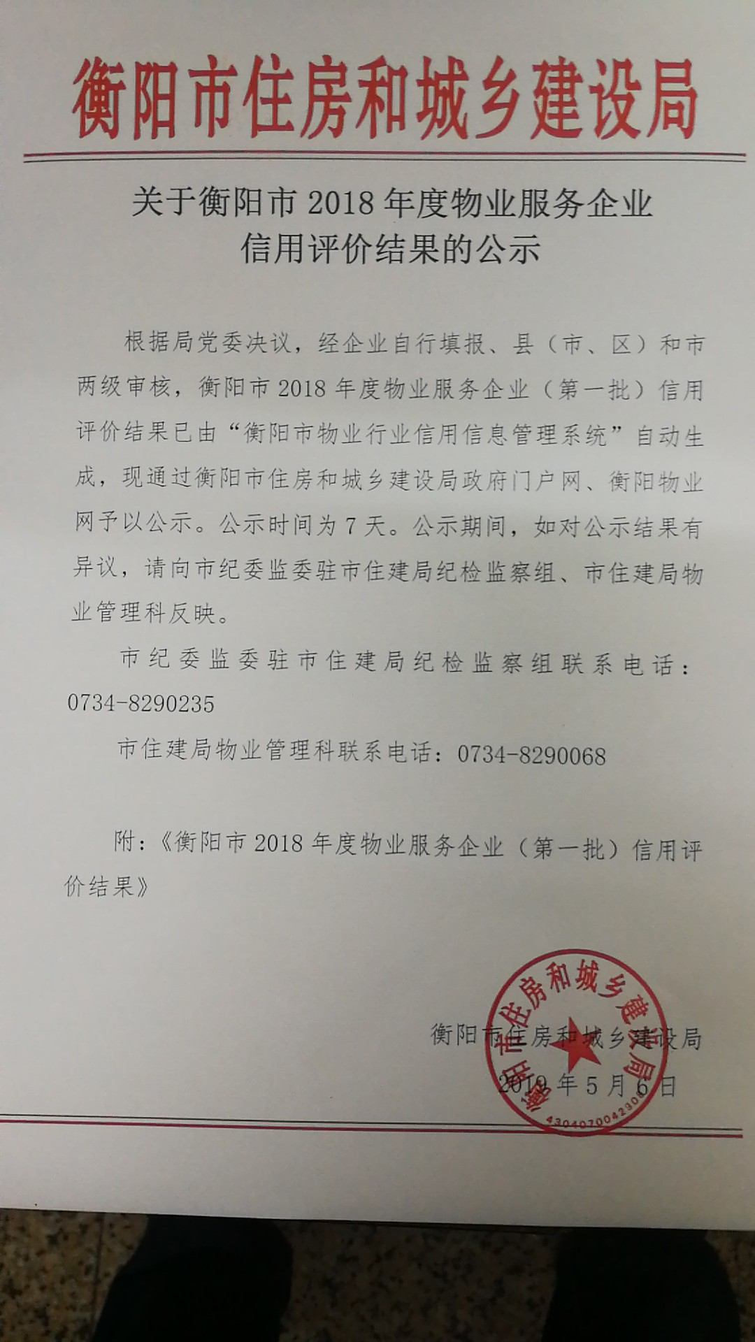 关于公布衡阳市2018年度物业服务企业(第一批)信用评价结果的通知