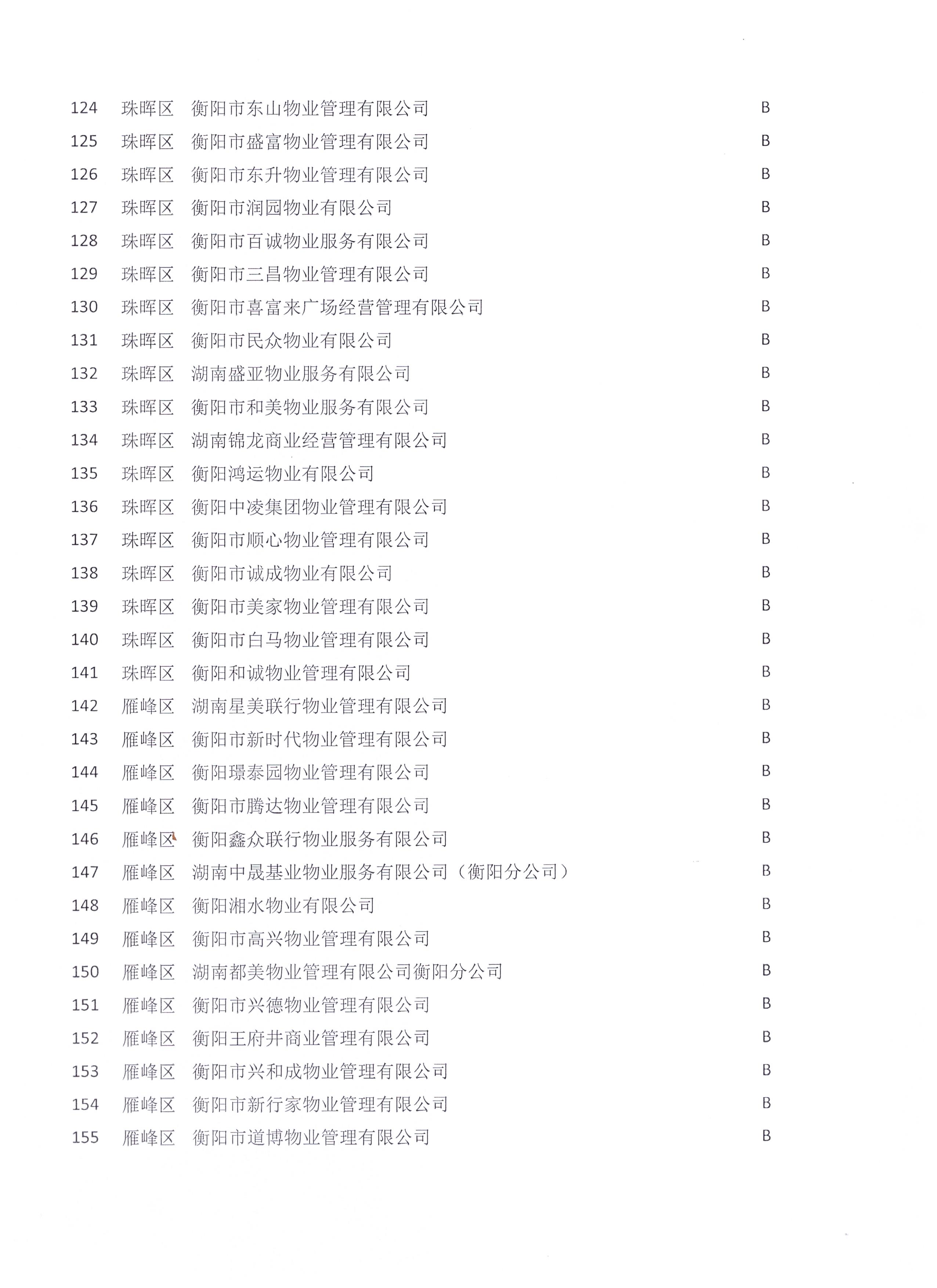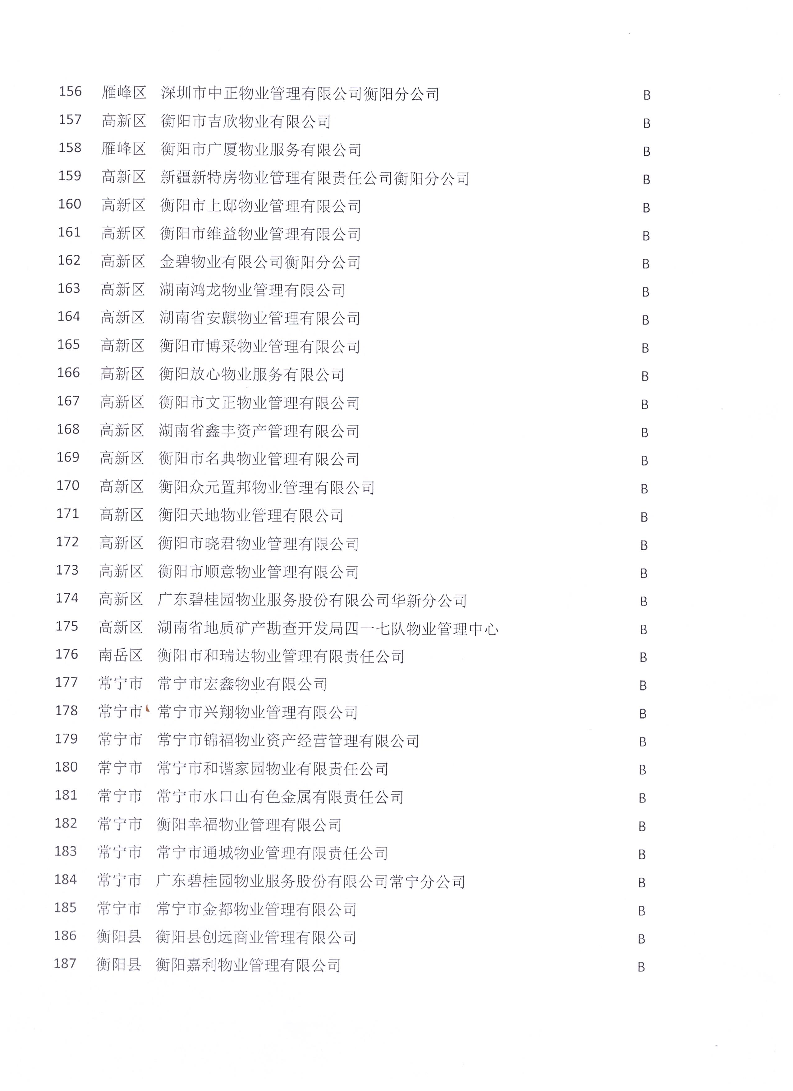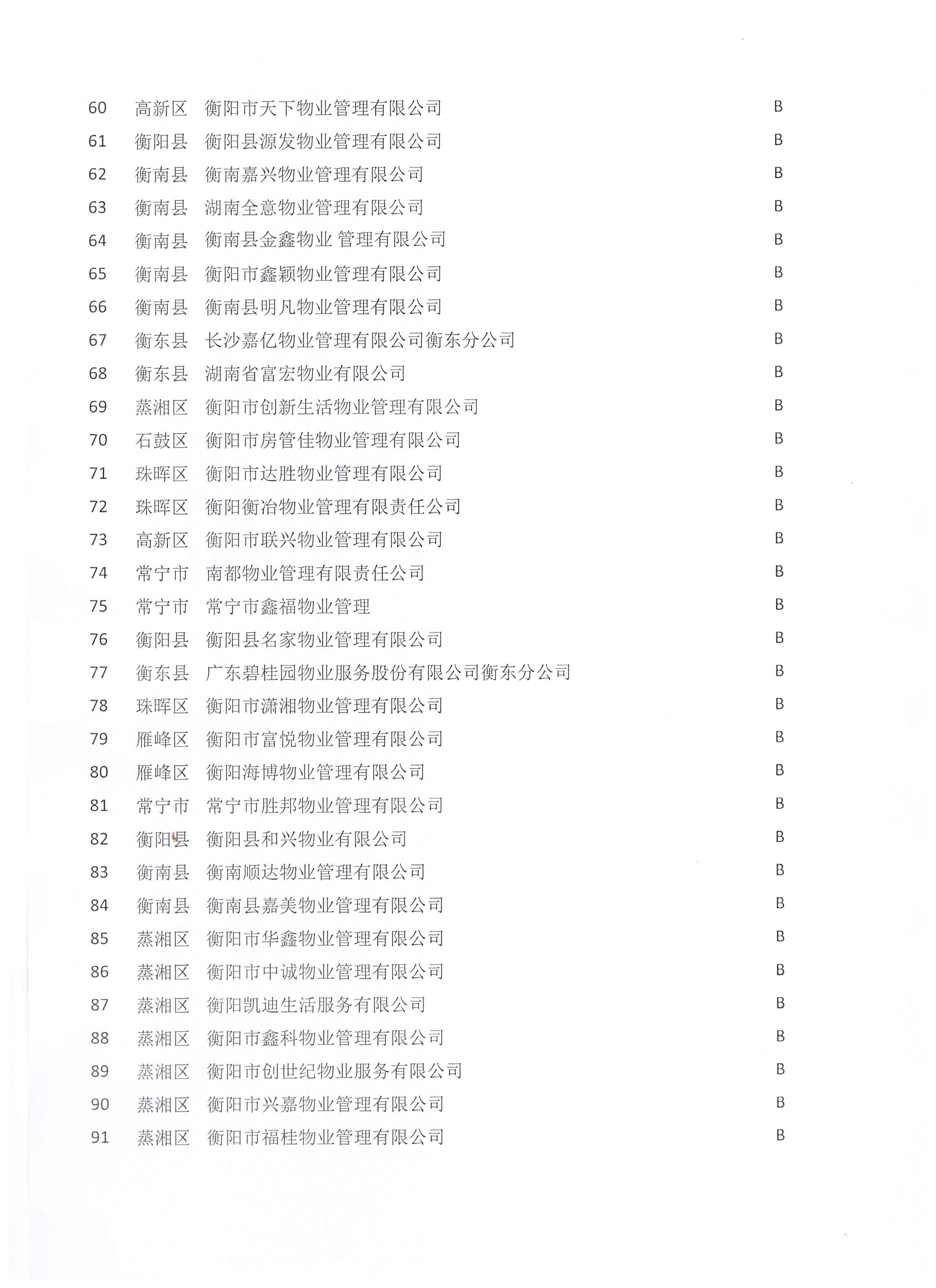 关于公布衡阳市2019年度物业服务企业信用评价结果的通知