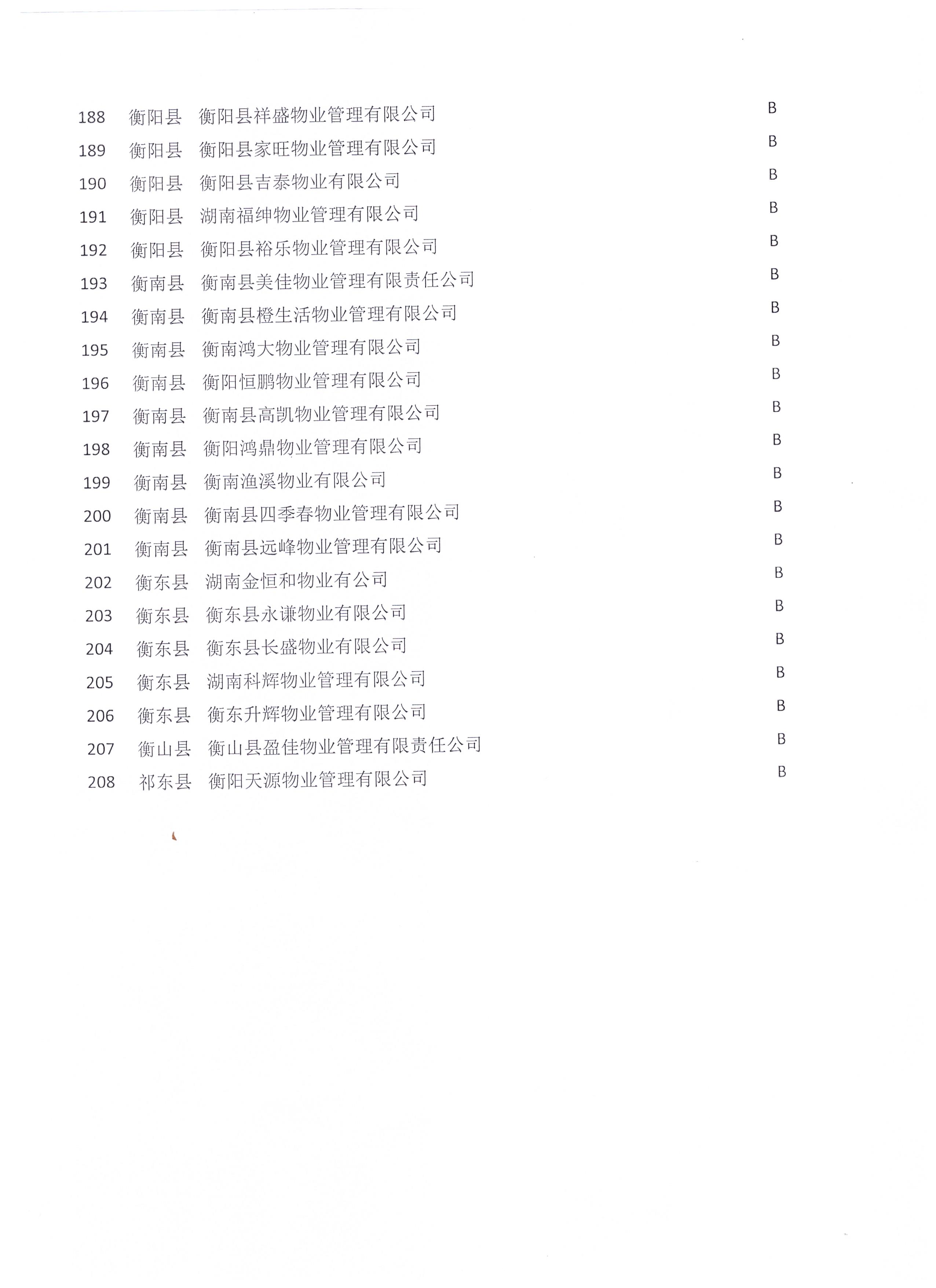 关于衡阳市2019年度物业服务企业信用评价结果的公示