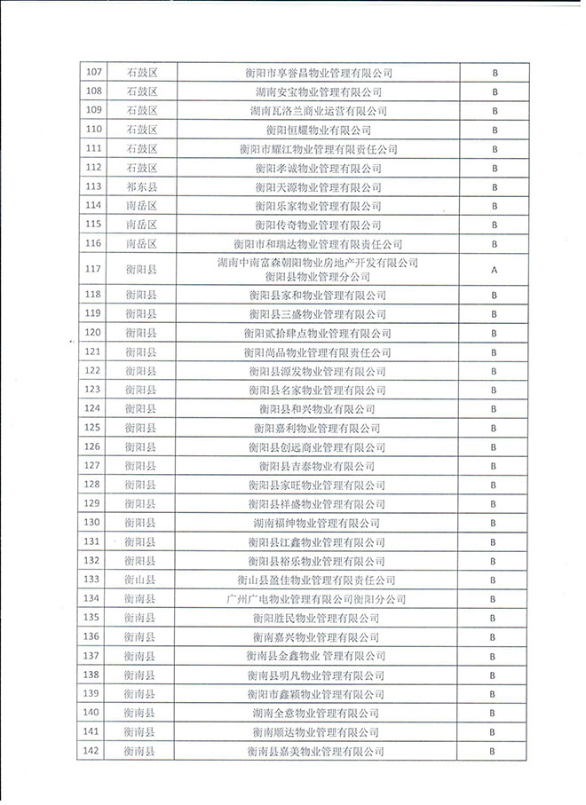 关于公布衡阳市2019年度物业服务企业信用评价结果的通知