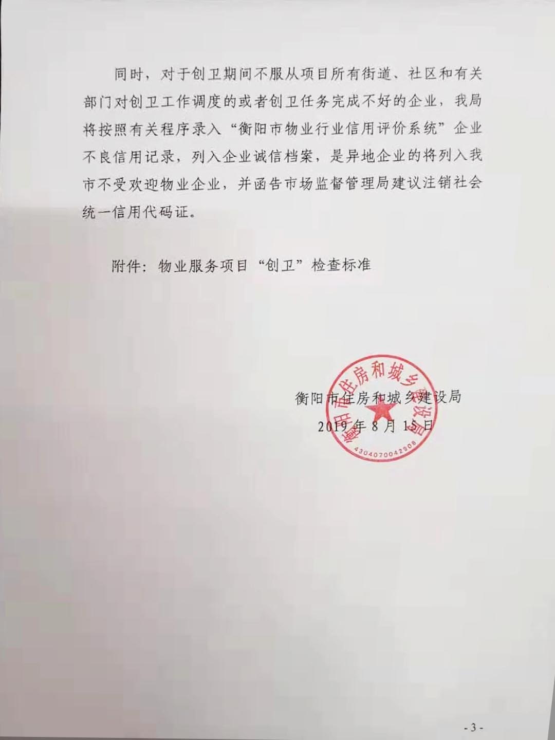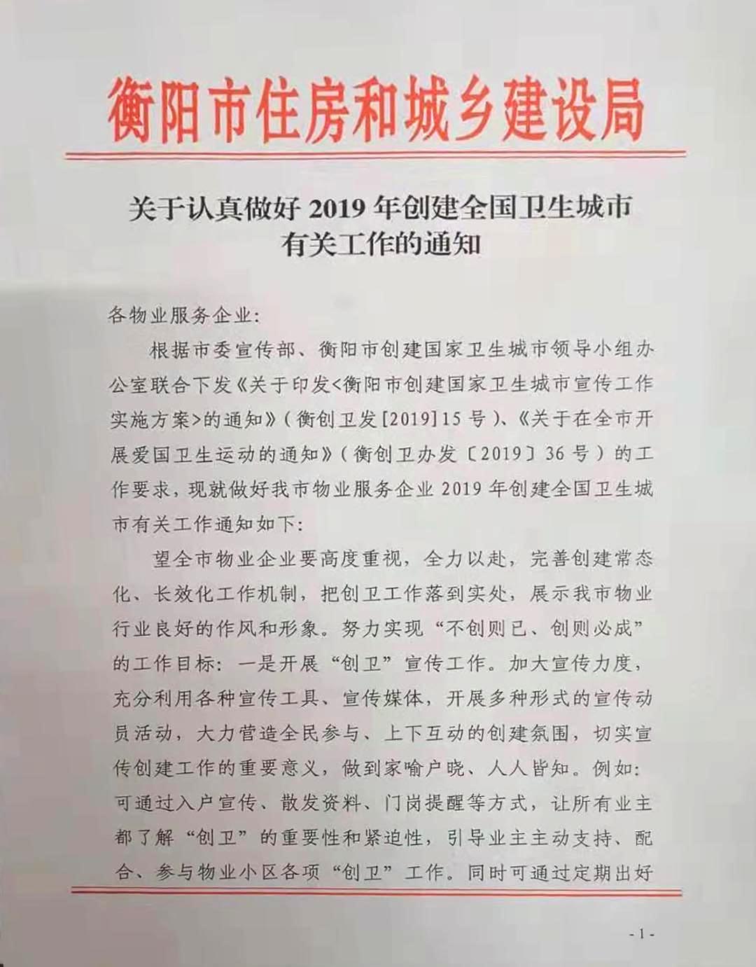 关于公布衡阳市2019年度物业服务企业信用评价结果的通知