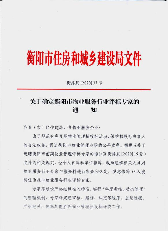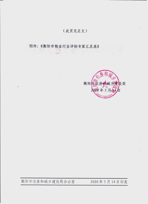 关于公布衡阳市2020年度物业服务企业信用评价结果的通知