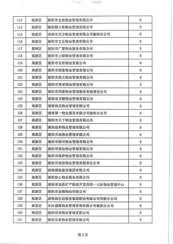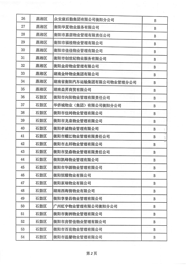关于公布衡阳市2019年度物业服务企业信用评价结果的通知