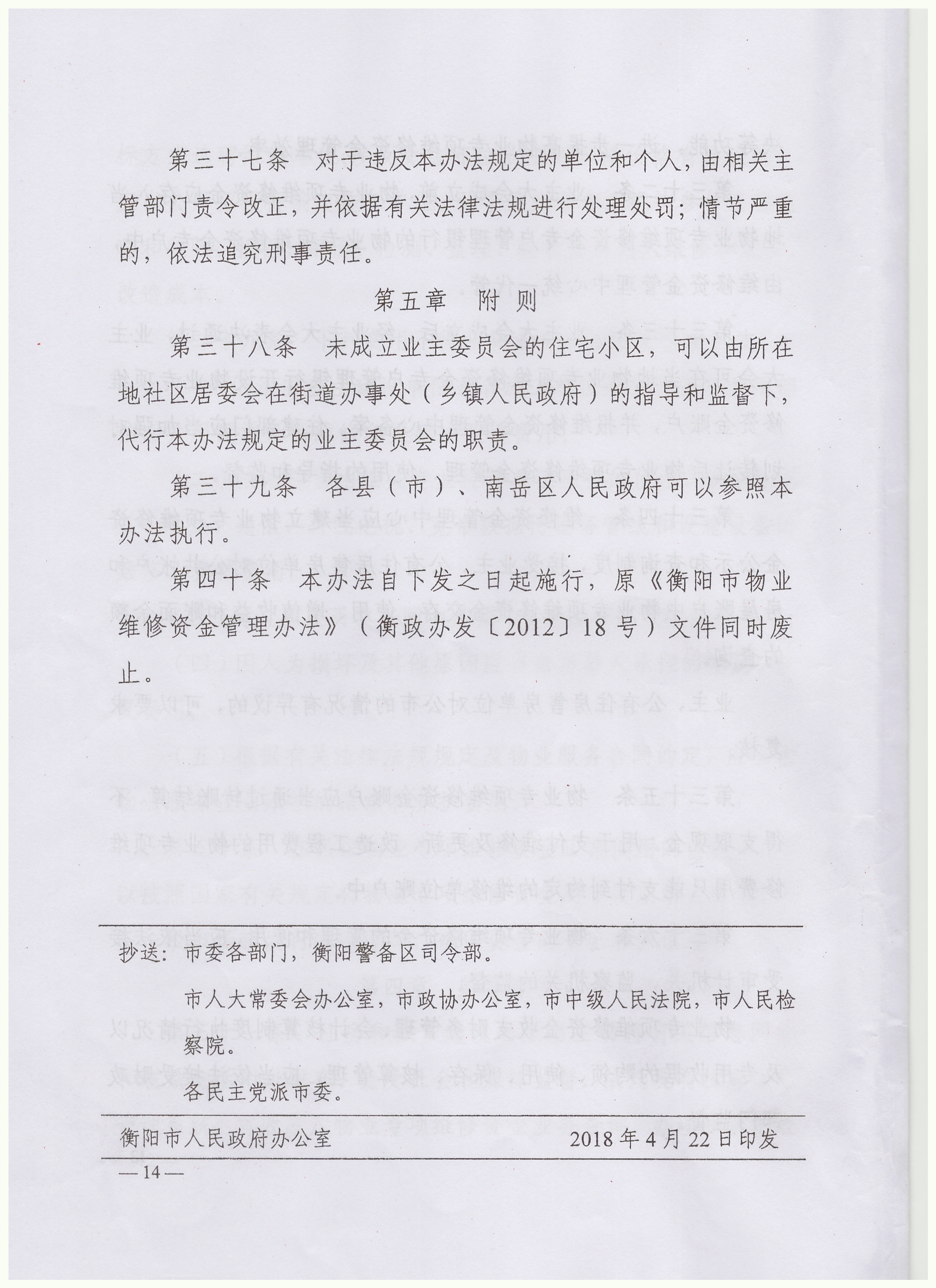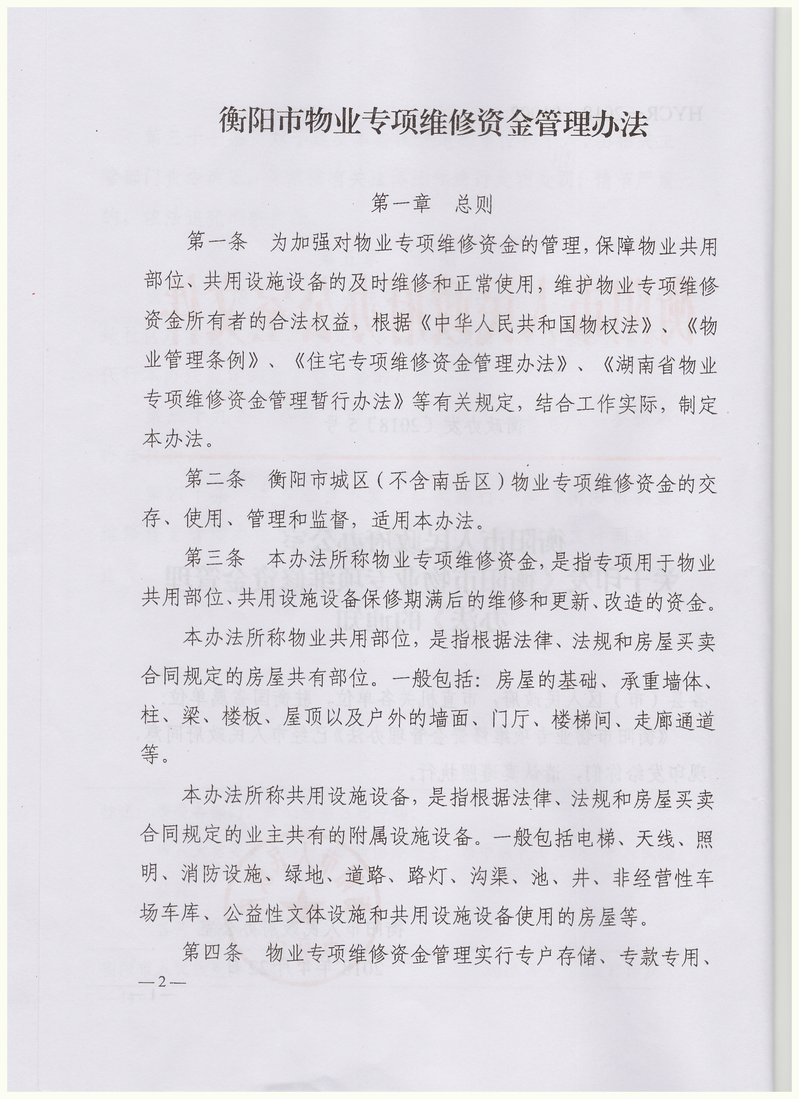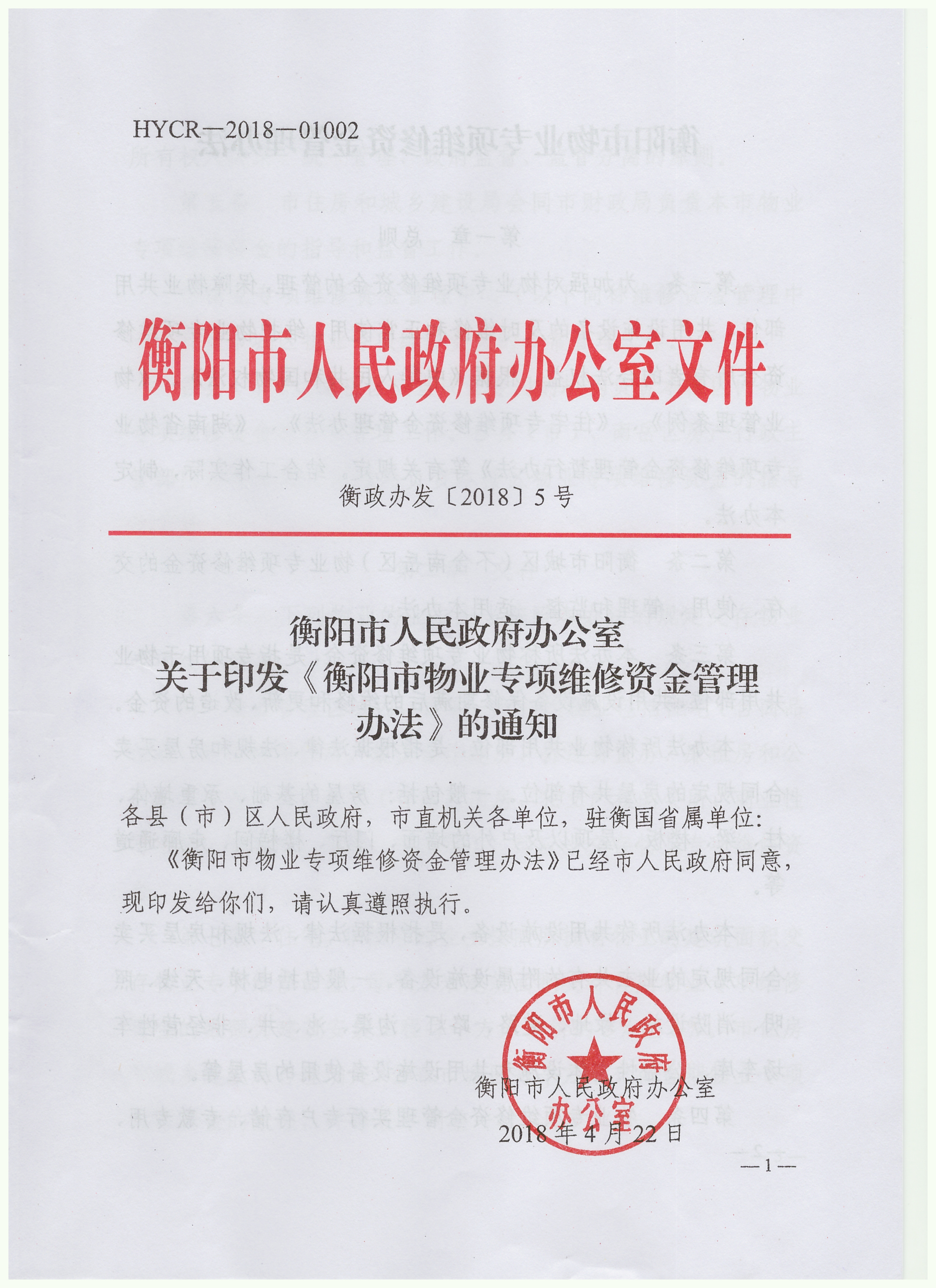 衡阳市人民政府办公室关于印发《衡阳市物业专项维修资金管理办法》的通知