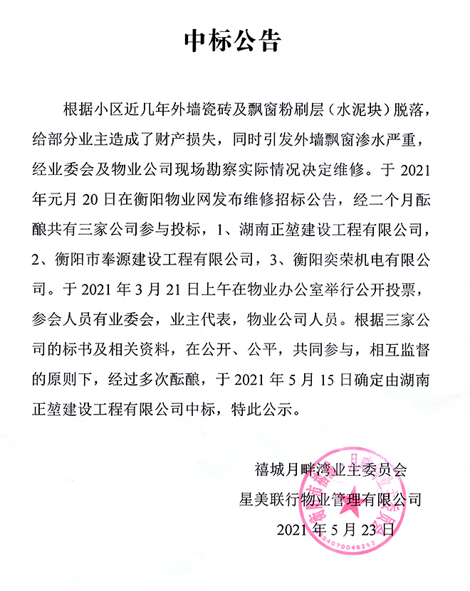 祁东县万昌欣城小区(B区)商住房项目前期物业服务中标公告