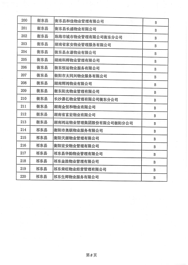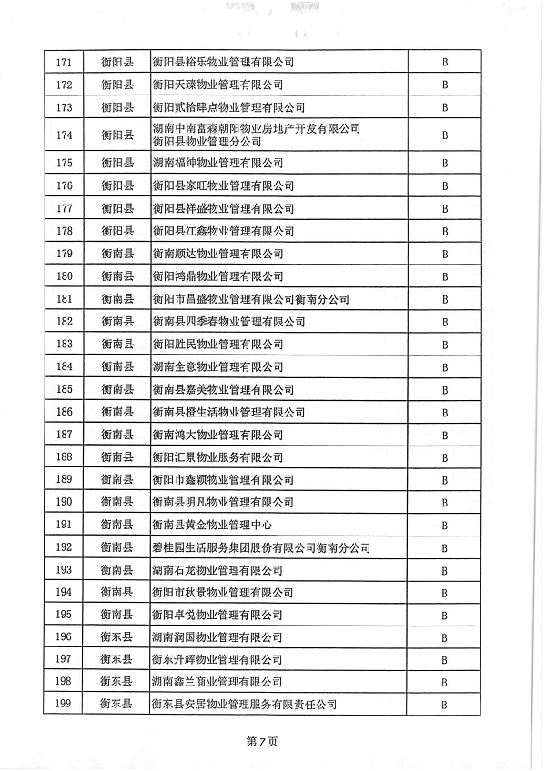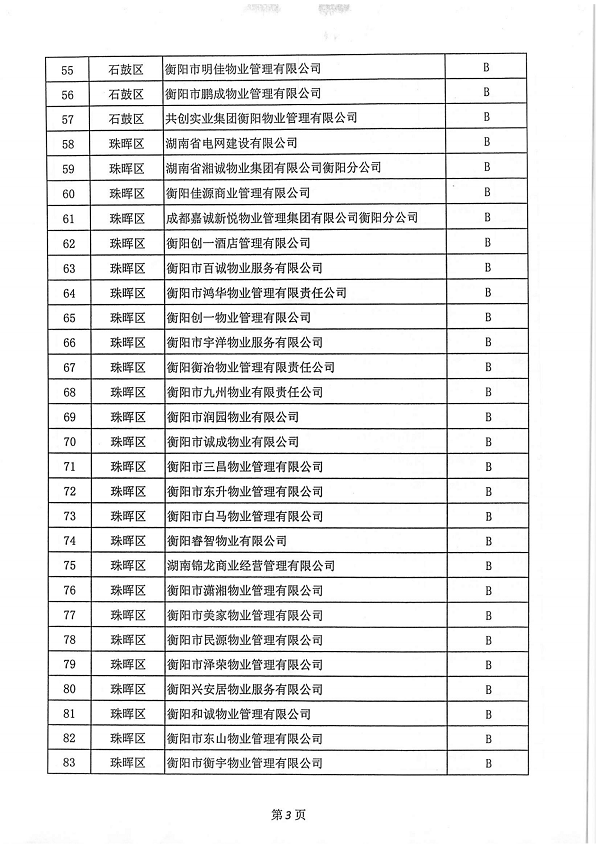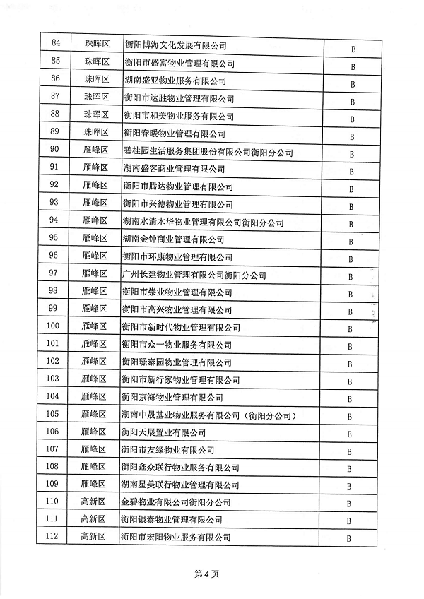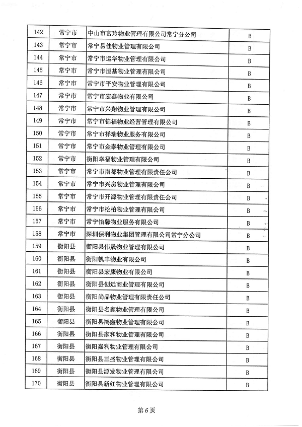 关于公布衡阳市2019年度物业服务企业信用评价结果的通知