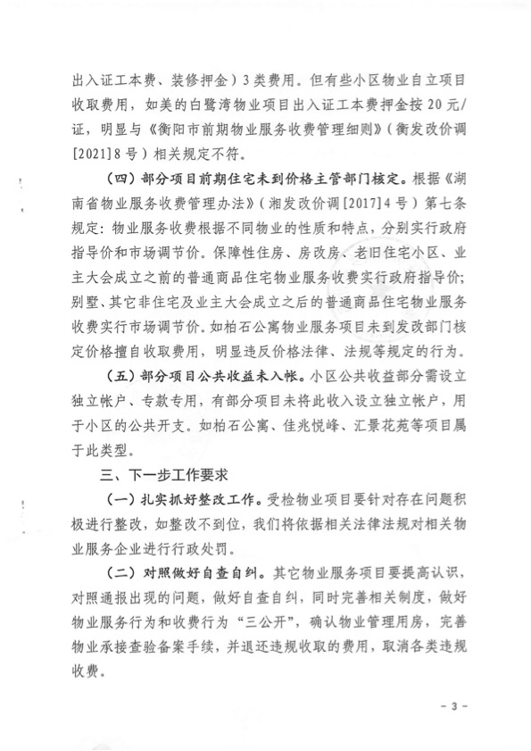关于开展衡阳市城区物业服务行为和收费行为2023年“双随机、一公开”部门联合检查情况的通报